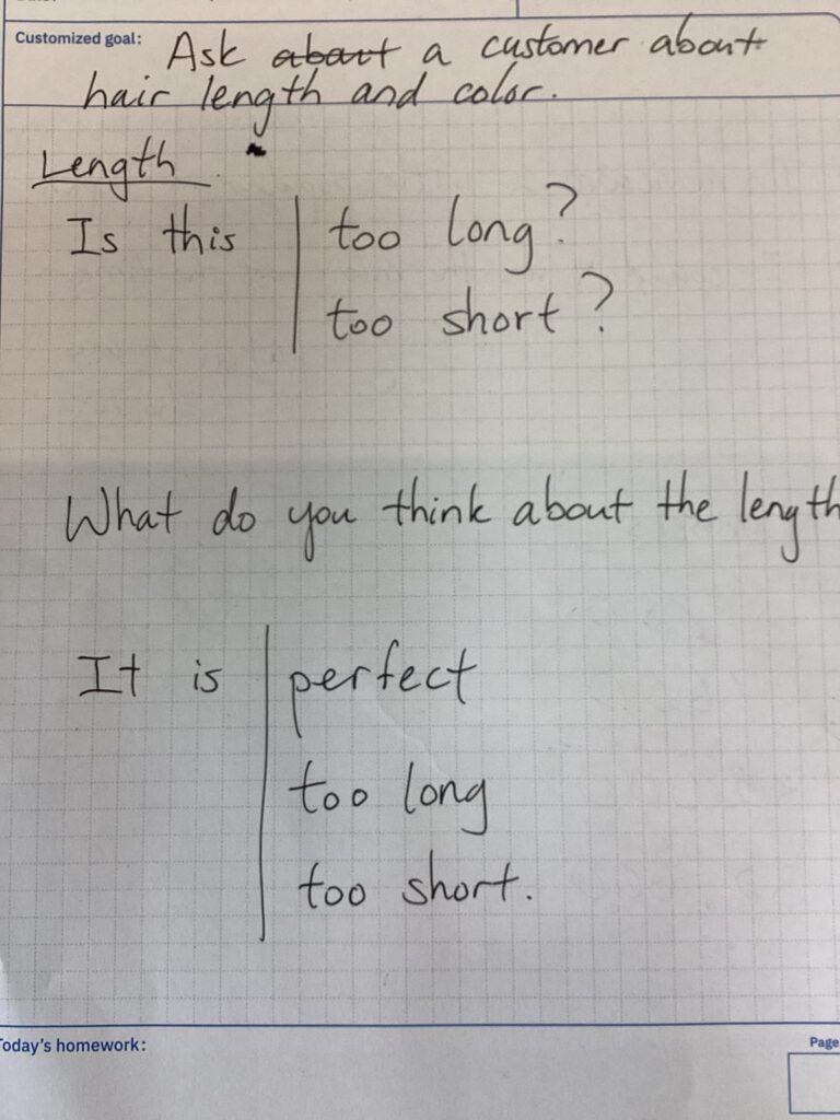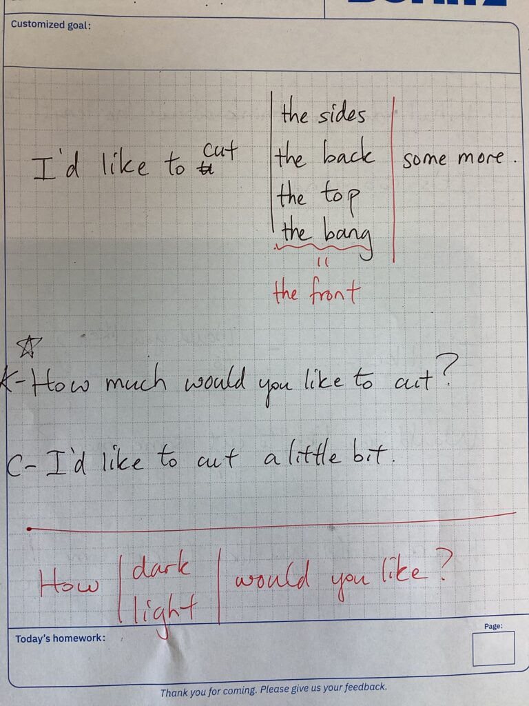 今回はテキストとは違い、ヘアーカットの長さ感、カラーの色の納得感とかを教えて頂きました。