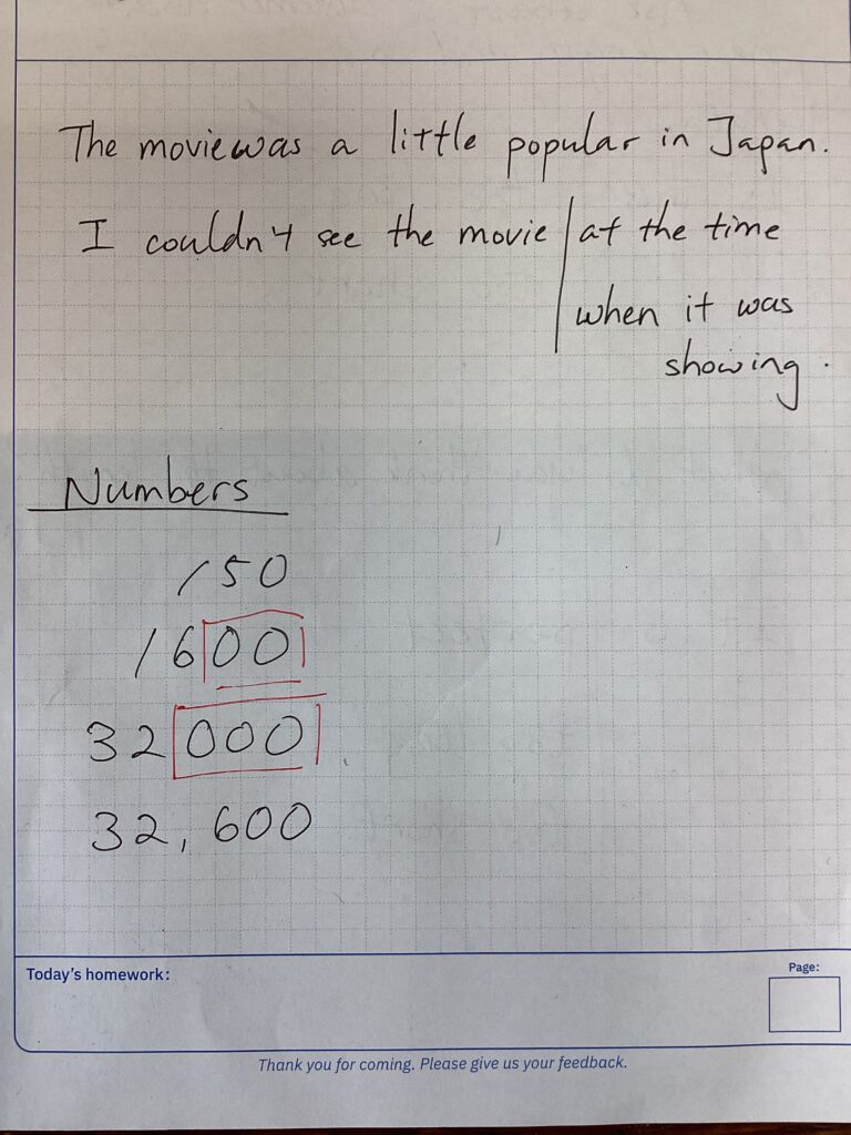 今年初めての英会話レッスンに行きました。今回はアジア系の男性講師の方でした。いつも分かり易い文章を書き出してくれるので