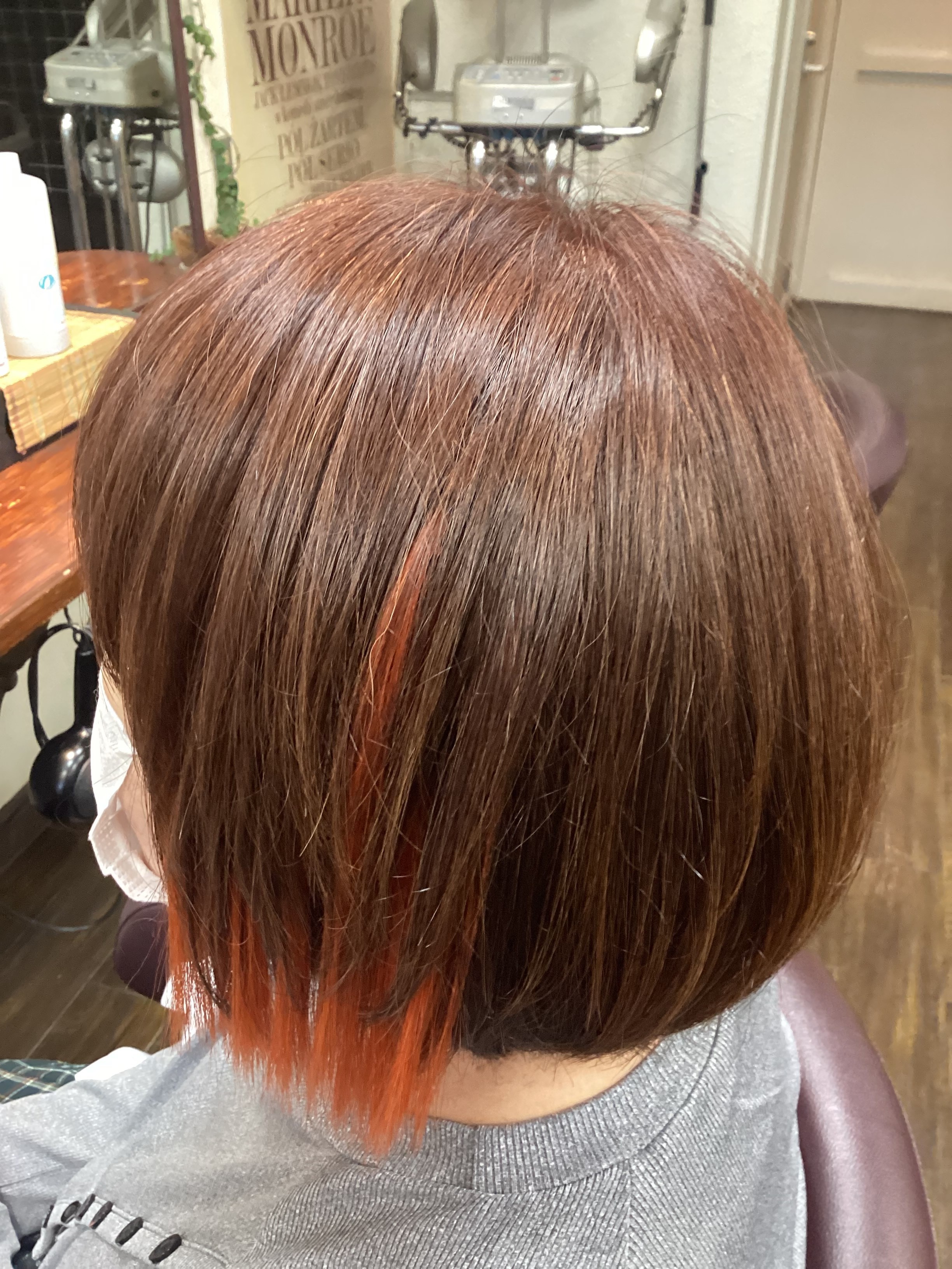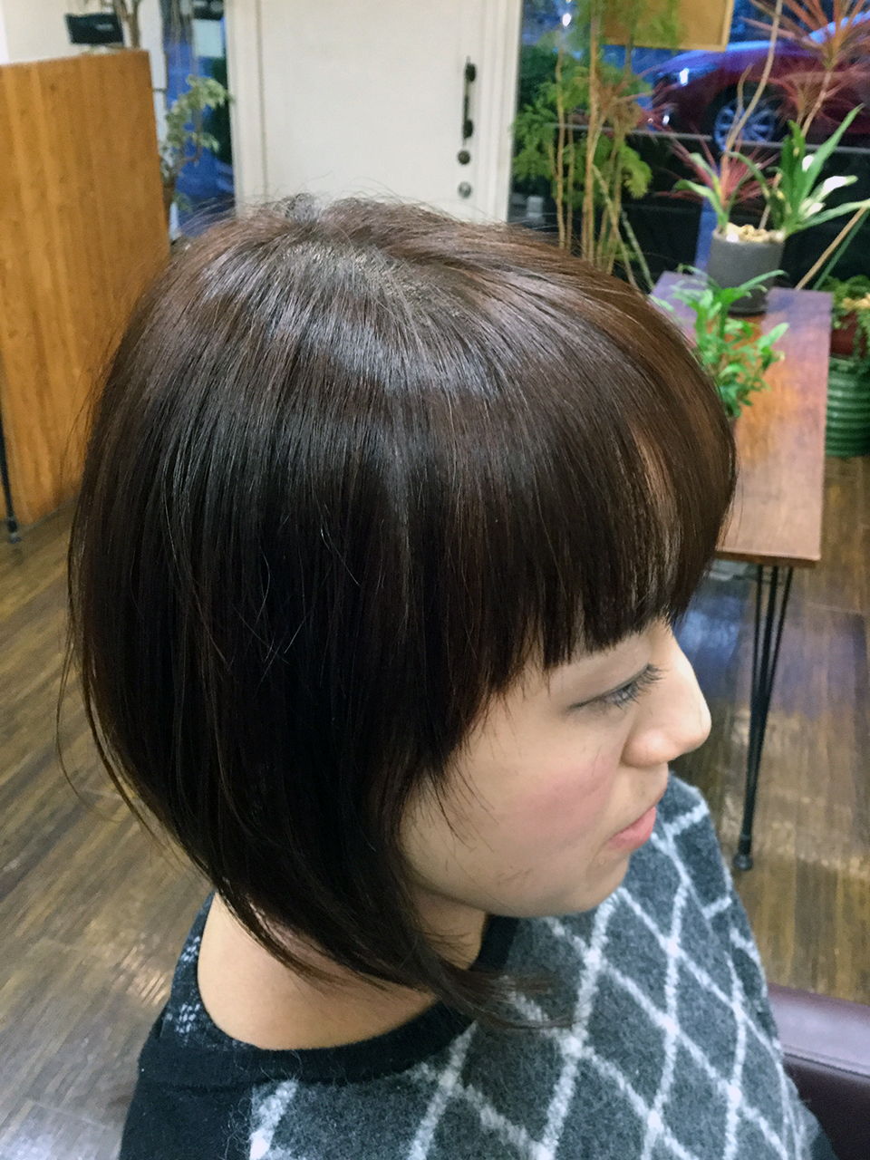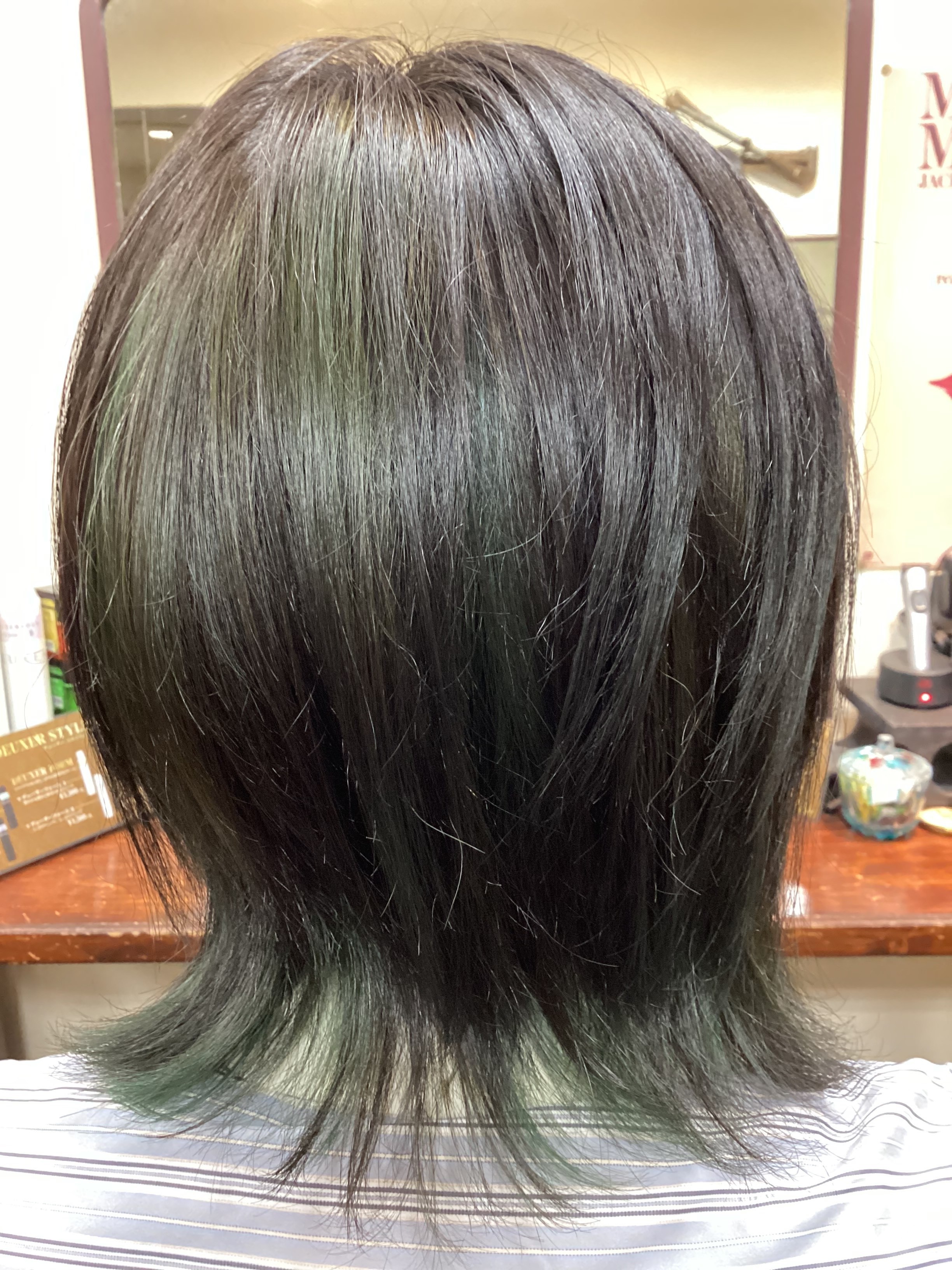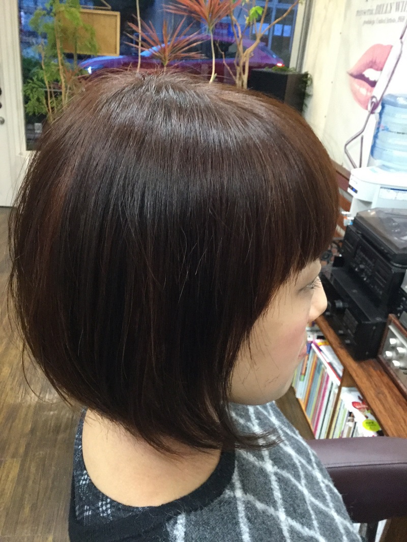カットとリタッチの方に限ります。根元1.5センチの所だけ染めます。ヘマチン、又はアフターブレイクを塗布してシャンプーし、地肌と髪を守ります。