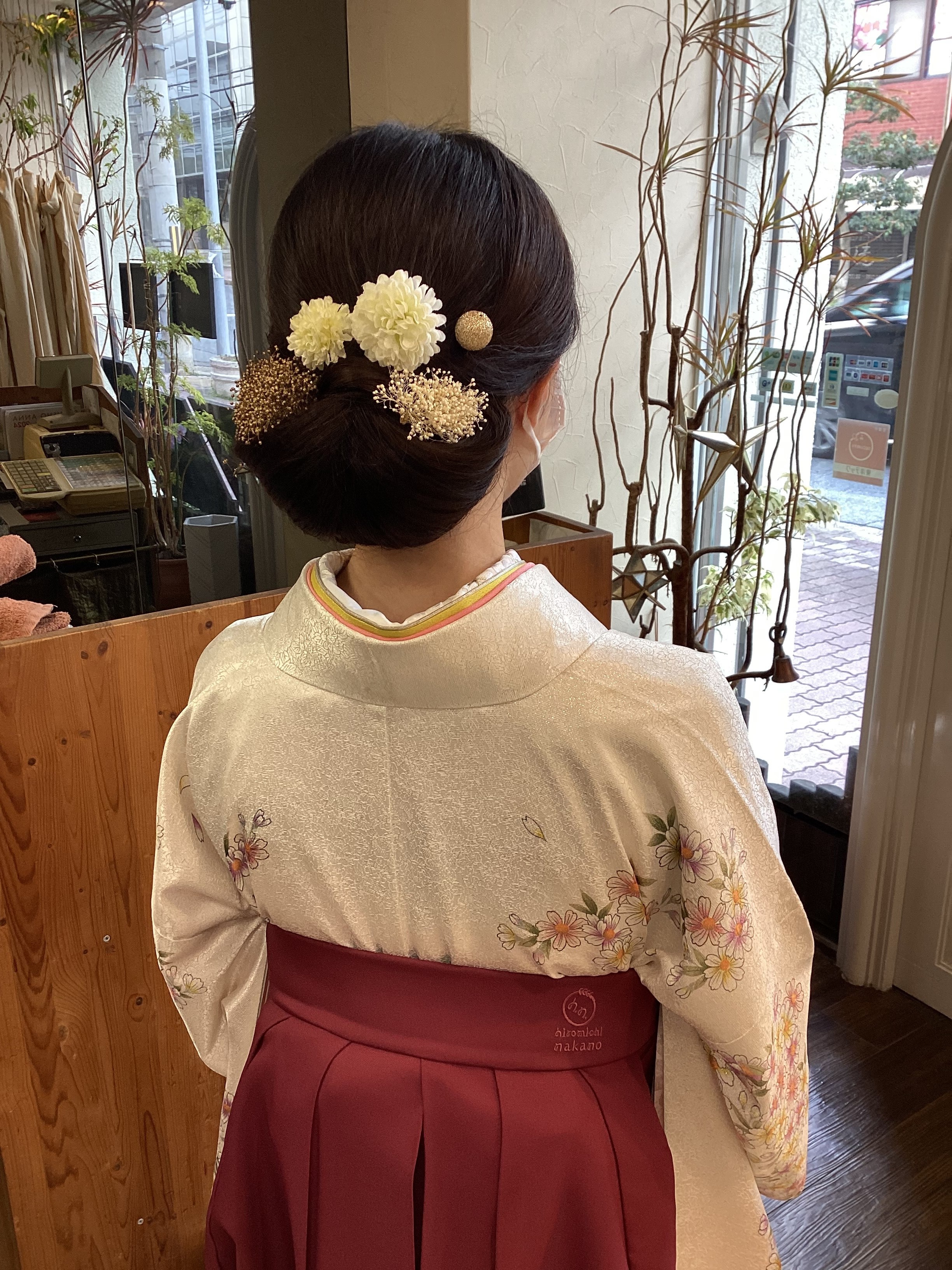 卒業式などのはかまの着付け、特別に着付けの担当者により行なっています。セットは従来のスタイリストが行います。時間外予約承ります。要相談TEL